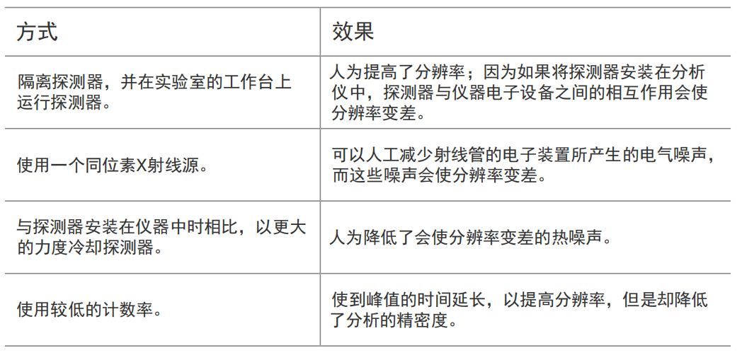 在比較不同的分析產品時,某些供應商會強調打動人心的分辨率數值,但是這些數值的背后往往掩蓋了更多的事實。在許多情況下,這些供應商只是援引了制造X射線探測器的公司提供給他們的分辨率數值。而探測器制造商一般是在理想條件下、隔離的環境中測量分辨率。如果想要了解分析儀在實際操作條件下的性能,就要看在實際操作條件下,X射線探測器已被安裝在分析儀中時所匯報的分辨率。