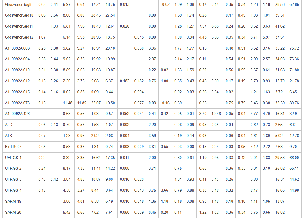圖2. 奧林巴斯手持式XRF光譜儀檢測大量煤認證參考材料(CRM)獲得的結果與這些材料的標稱值高度吻合。上面的圖表表明對于重要元素:Mg、Al、Si、P、S、K、Ca、Ti和Fe,實驗室認證值和XRF分析儀獲得的數據值在準確性和精確性方面都表現出高度的一致性。 數據表包含了繪制這些圖表所依據的實驗室數據和XRF數據。數據承蒙新南威爾士大學生物和地球科學學院提供 - ACARP項目。