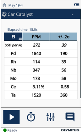 Vanta手持式XRF分析儀可以快速、準(zhǔn)確地測(cè)量汽車催化轉(zhuǎn)化器材料中的貴重鉑族金屬(PGM):鈀(Pd)、鉑(Pt)和銠(Rh)。通過(guò)現(xiàn)場(chǎng)測(cè)量,可以在整個(gè)回收流程中對(duì)催化劑廢料進(jìn)行有效分揀和價(jià)格評(píng)估。