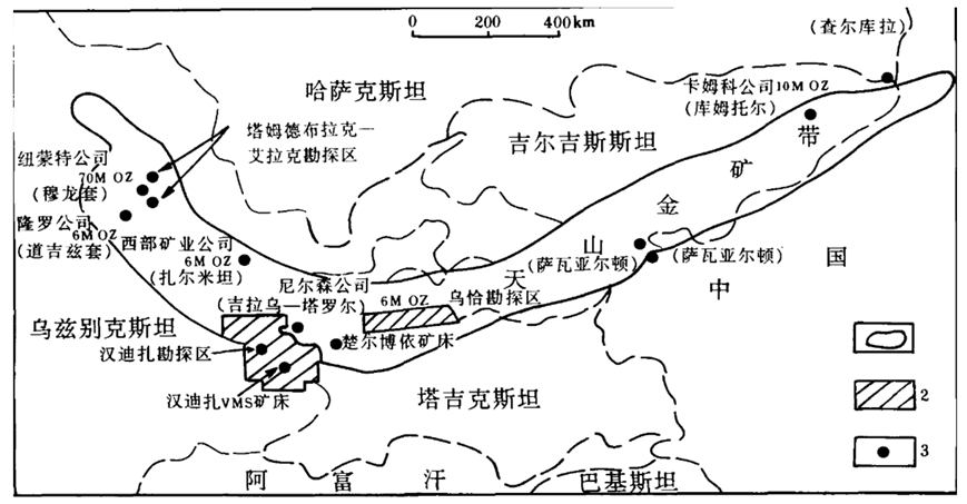 天山西段,從烏茲別克斯坦向東,經塔吉克斯坦、吉爾吉斯斯坦到中國新疆,構成了世人矚目的巨型金成礦帶,即“亞洲金腰帶”。烏茲別克斯坦、吉爾吉斯斯坦等幾個國家在這條成礦帶上發現了眾多大型、超大型金礦。其中,最為著名的當屬于烏茲別克斯坦的穆龍套金礦床,該礦是世界級超大型獨立金礦床,遠景資源儲量預估1.7億盎司(5287.6噸),平均品位約3.5克/噸。該礦2022年生產了約1700盎司(約48.2噸)的黃金,是全球第二大在產金礦。