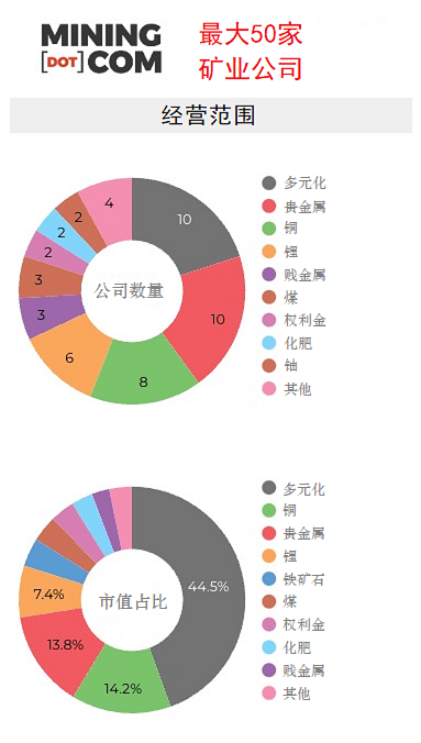 目前,50大礦企市值合計(jì)為1.38萬(wàn)億美元,回落到2021年6月底的水平。