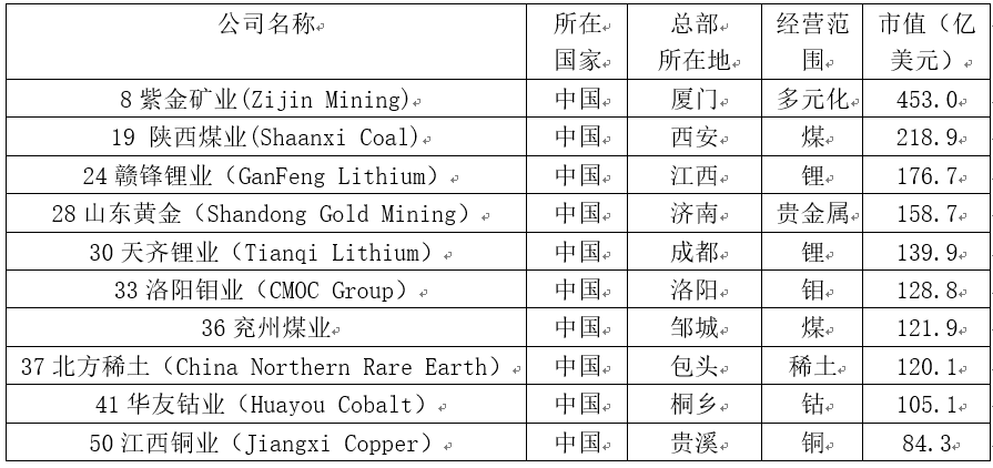共有十家中國(guó)礦企上榜