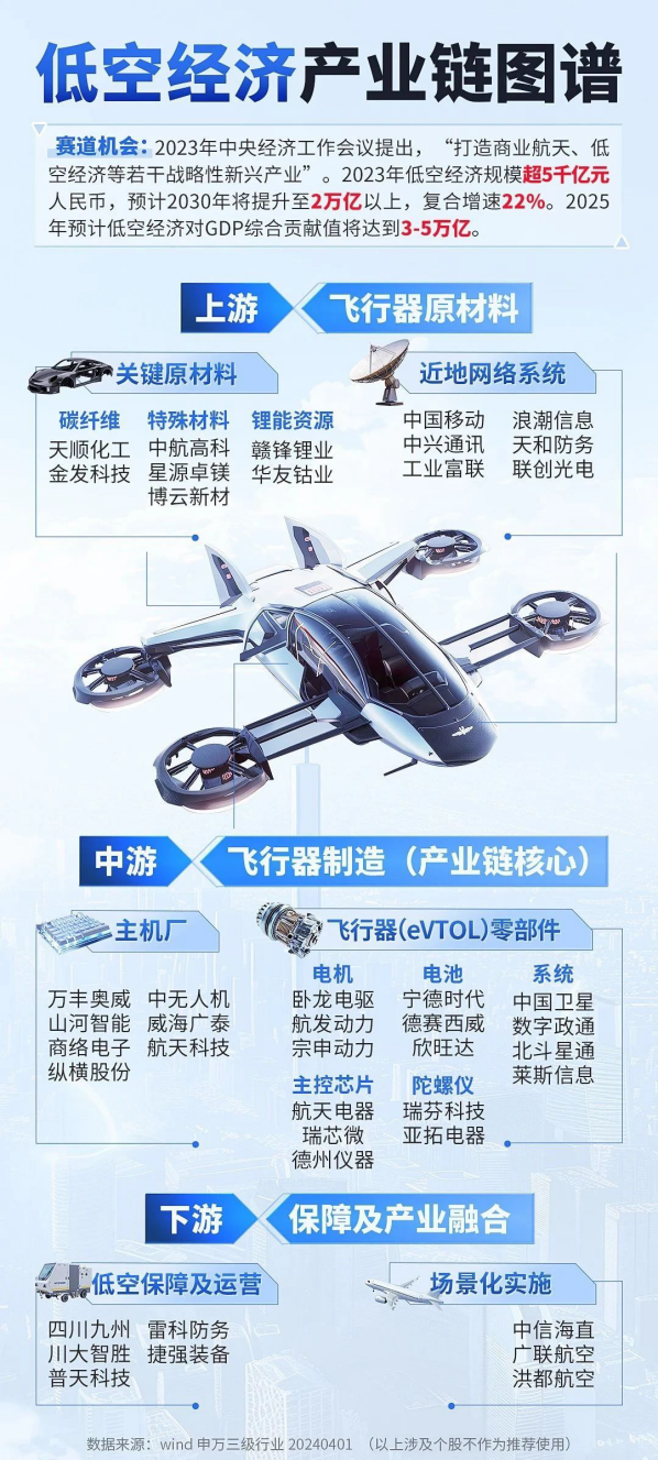 低空經濟作為戰略性新興產業,是新質生產力的典型代表,擁有超長的產業鏈,且應用場景豐富,既包括傳統的航空業,又融合了以無人機為支撐的低空服務業,在礦業、工業、農業等領域都有廣泛的應用,發展前景廣闊。