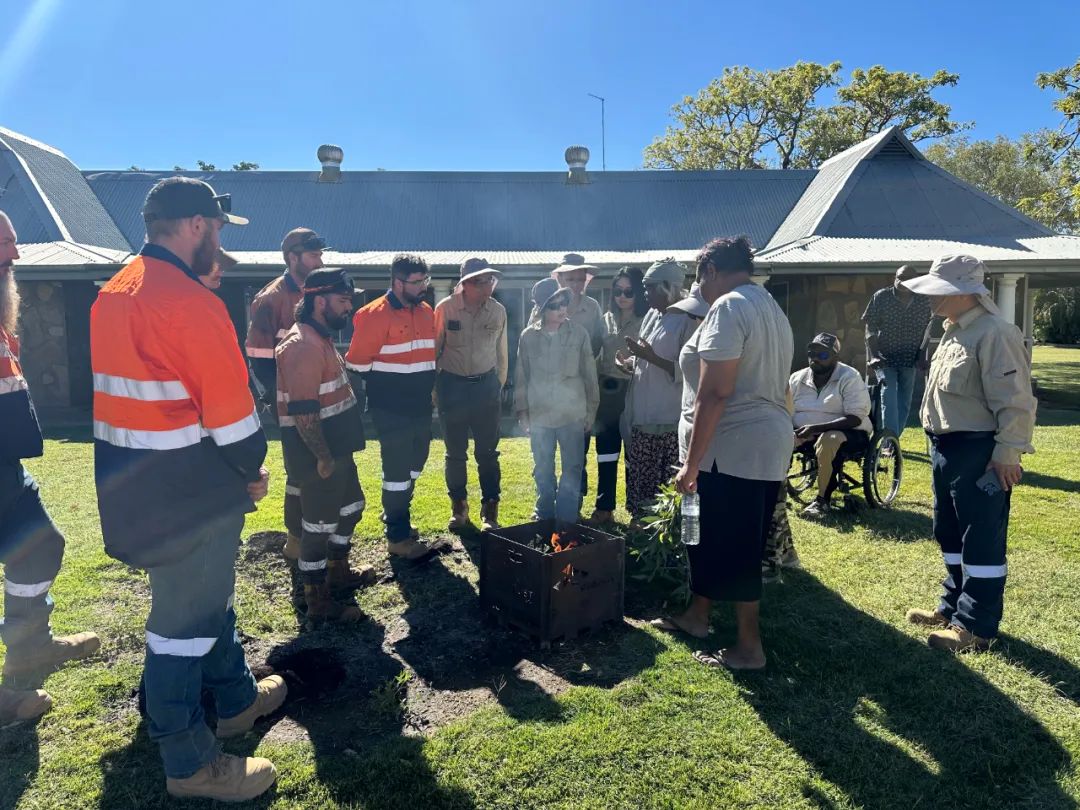 開(kāi)鉆期間,當(dāng)?shù)毓拍岚驳贤林M織舉辦了莊嚴(yán)的傳統(tǒng)儀式和土著文化培訓(xùn),對(duì)中方人員的到來(lái)表示熱烈歡迎。項(xiàng)目組全體成員、子午線礦業(yè)有限公司董事Gina、鉆探公司代表等受邀參加歡迎儀式。土著長(zhǎng)老Helen女士發(fā)表講話(huà),對(duì)西色國(guó)際多年來(lái)尊重、保護(hù)當(dāng)?shù)卦∶裎幕z產(chǎn)的舉措表示感謝,將繼續(xù)友好支持公司在該區(qū)的勘查活動(dòng)。