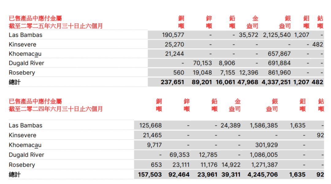 科馬考Khoemacau銅礦位于非洲南部卡拉哈里銅礦帶,保有銅資源量超640萬(wàn)噸,銀資源量63億盎司。2021年投產(chǎn),設(shè)計(jì)年產(chǎn)銅6萬(wàn)噸,銀160萬(wàn)盎司。2024年3月被五礦資源收購(gòu)。今年上半年該礦銅產(chǎn)量為2.12萬(wàn)噸,同比增長(zhǎng)121%,主要原因?yàn)榻衲晟a(chǎn)天數(shù)長(zhǎng)并且第二季度采礦量增加,2025年Khoemacau銅指導(dǎo)產(chǎn)量在4.3至5.3萬(wàn)噸之間。